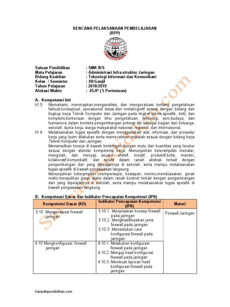 Ki kd administrasi infrastradministrasi infrastruktur jaringanuktur jaringan mata pelajaran: Administrasi infrastruktur jaringan kelas xii tkj kompetensi dasar: 3.10 mengevaluasi firewall jaringan 4.10 mengkonfigurasi firewal jaringan Rpp administrasi server semester 1 kelas xii. Administrasi infrastruktur jaringan mata pelajaran: .